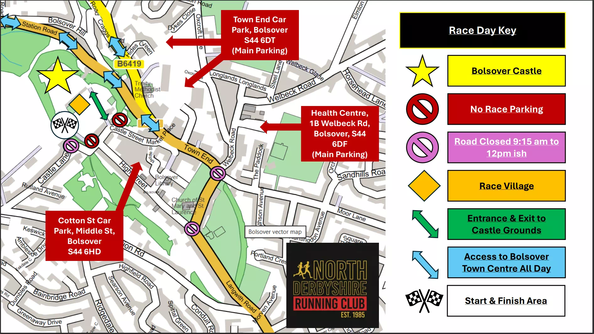 The route, starting and finishing in the iconic Bolsover Castle grounds, takes place over a 10K distance. It is a fast, potential PB course with a maxium field of 1250. It is largely rural and flat(ish) - well, in Derbyshire standards! - with net downhill on the way out and a corresponding climb on the way back in.